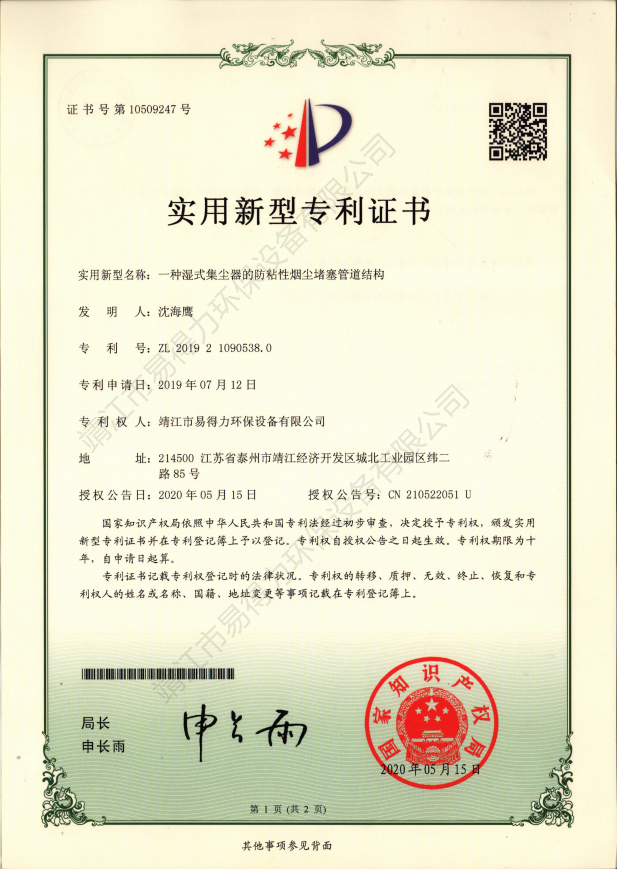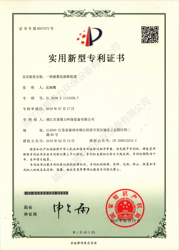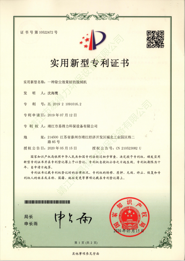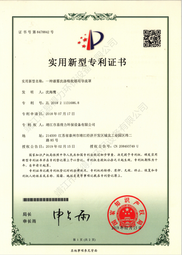 專利證書本公司坐落于開放開發(fā)超前城市江蘇靖江,我們精良優(yōu)秀設(shè)計團隊始終遵循著創(chuàng)新超越的理念,贏得了中外合資企業(yè)的信賴。易得力環(huán)保設(shè)備有限公司與上海環(huán)科院等科研單位保持合作關(guān)系,不斷加大自身的科研力量,集中了一批國內(nèi)環(huán)境科技研究和應用方面的高素質(zhì)人才,取得多項實用新型專利證書。…… 查看更多 >>