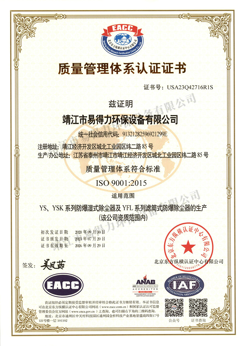 質(zhì)量管理體系認證證書